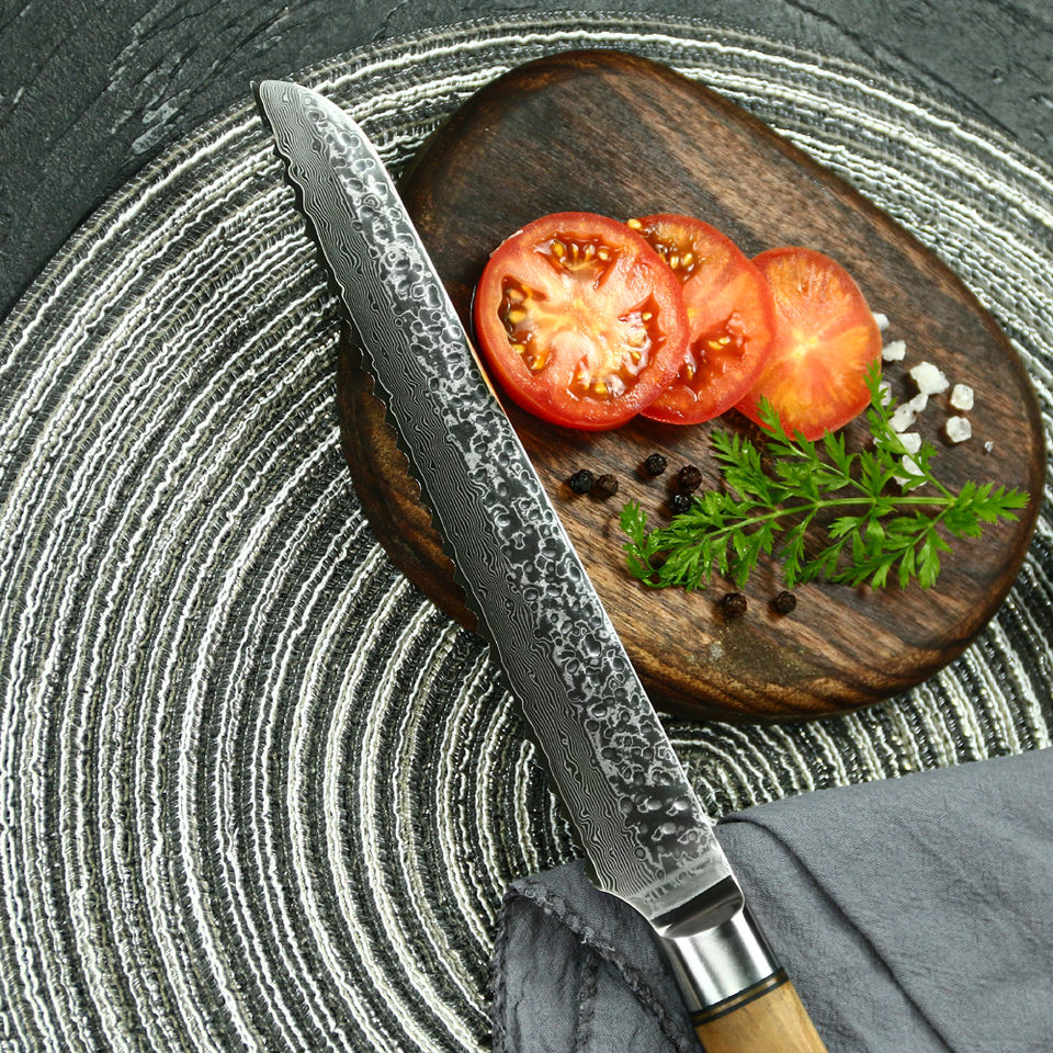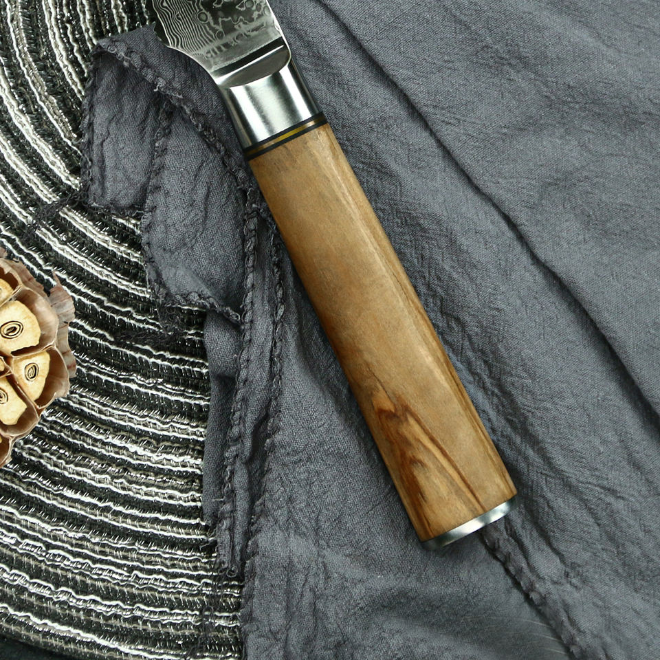 newly designed 67 layers damascus 7 inch kitchen break knife with stabilized processing olive wood
