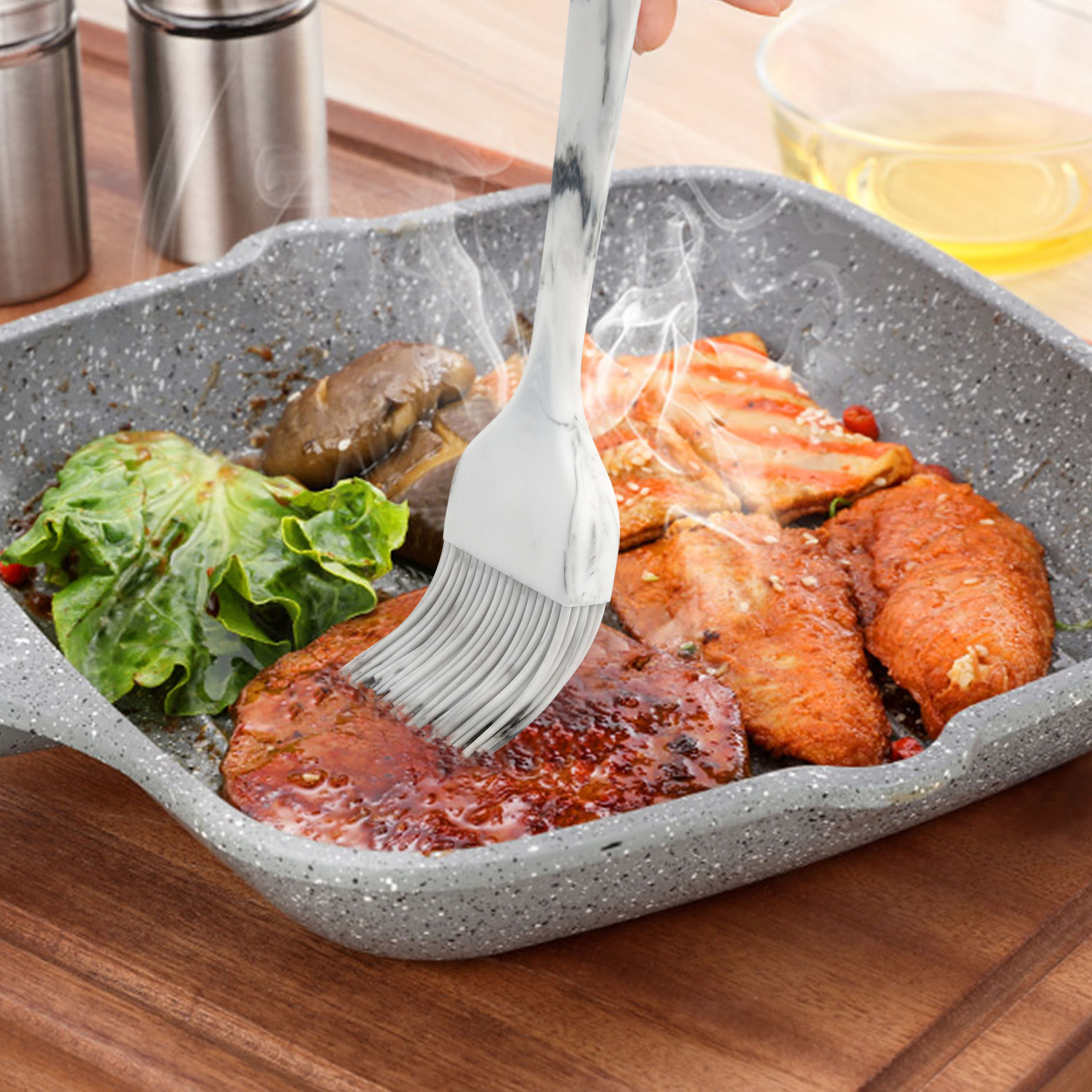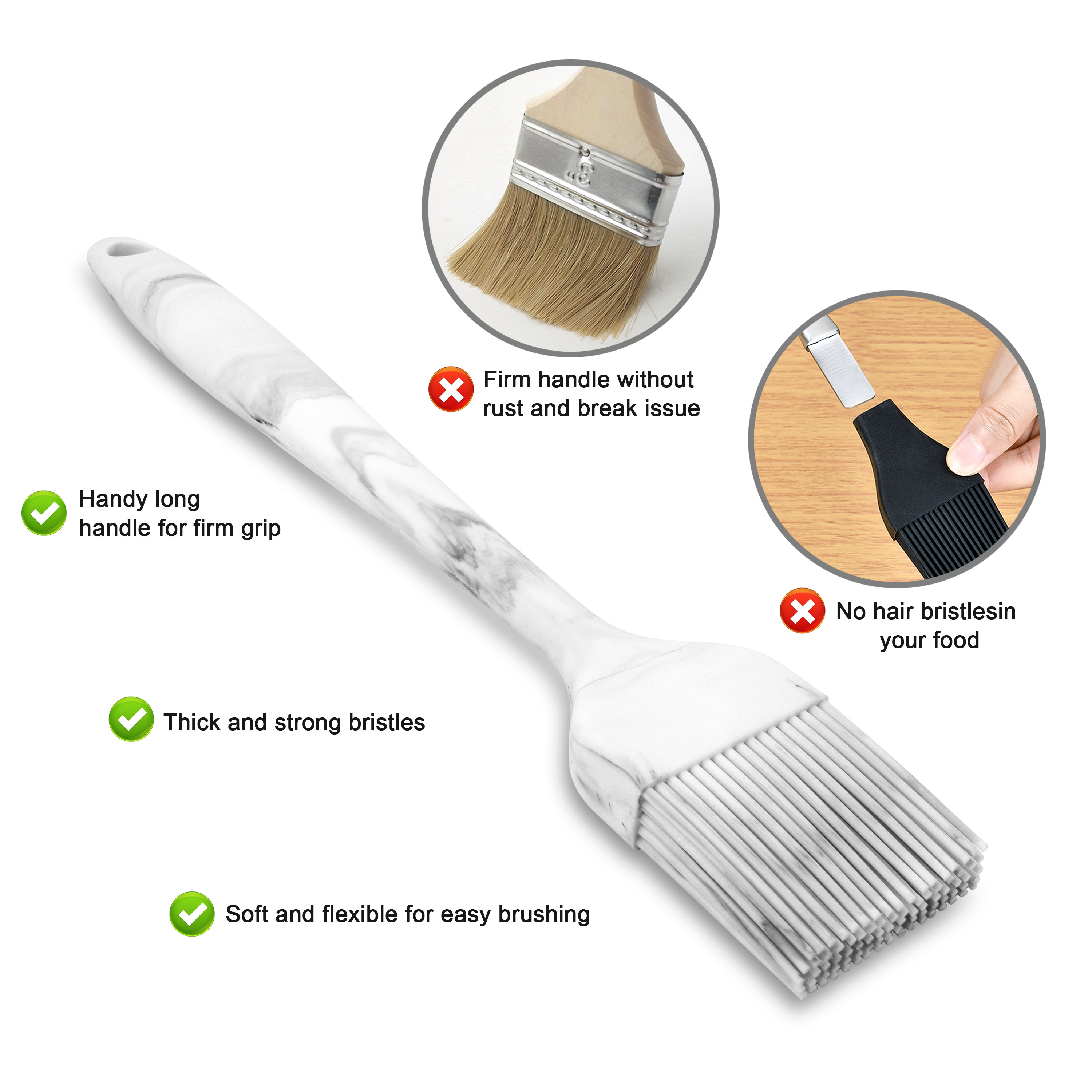 FIVETAS 1.97"x9.84"Heat Resistant Food Grade Silicone Pastry brush Basting Brush for Cooking,BBQ,Meat,Desserts.Kitchen Brush for Sauce Butter oil.Stainless Steel Core Handle.BPA Free. Marbling.