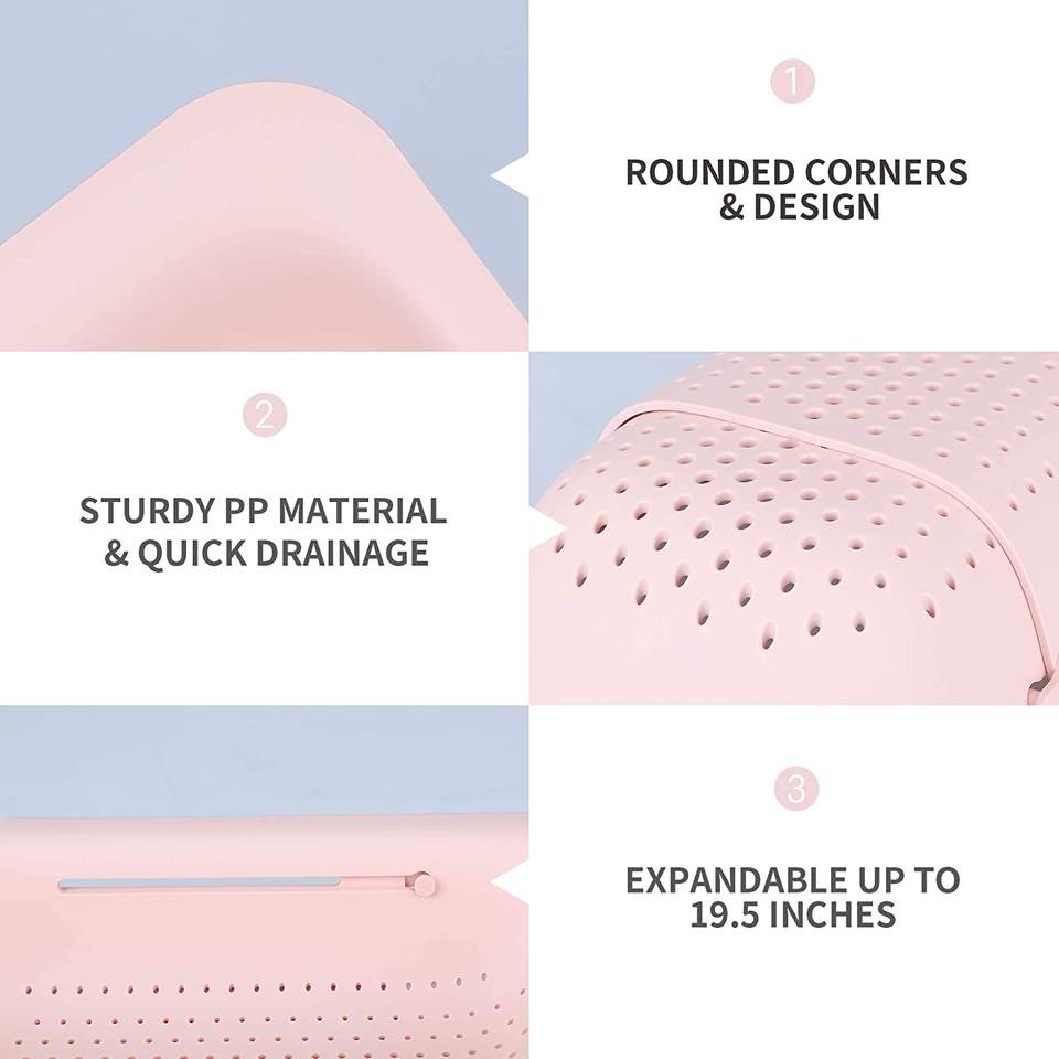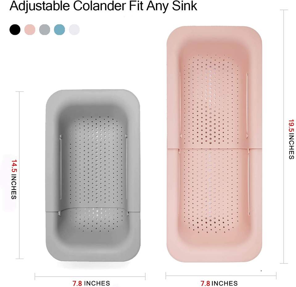 Over the Sink Colanders Kitchen Sink Fruit Strainer Basket Extendable Sink Colander for Wash Drain