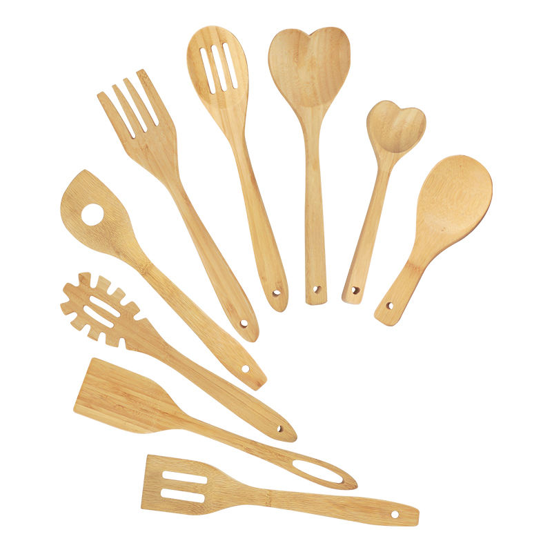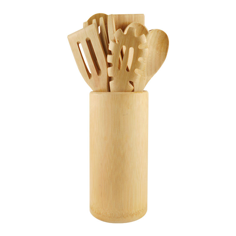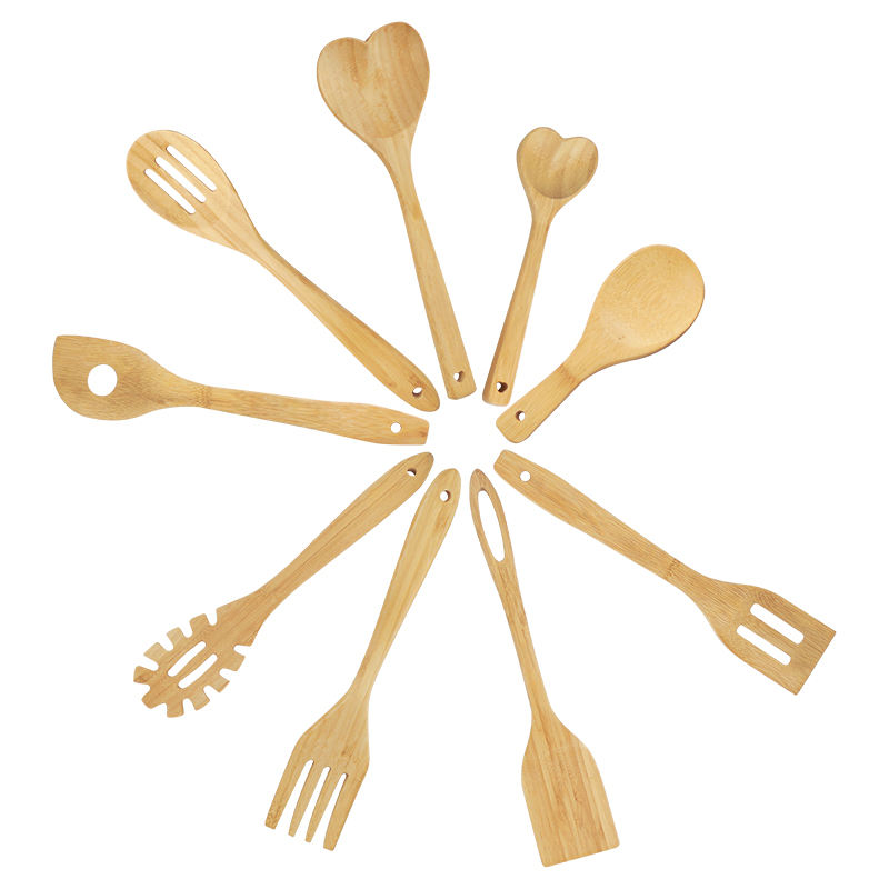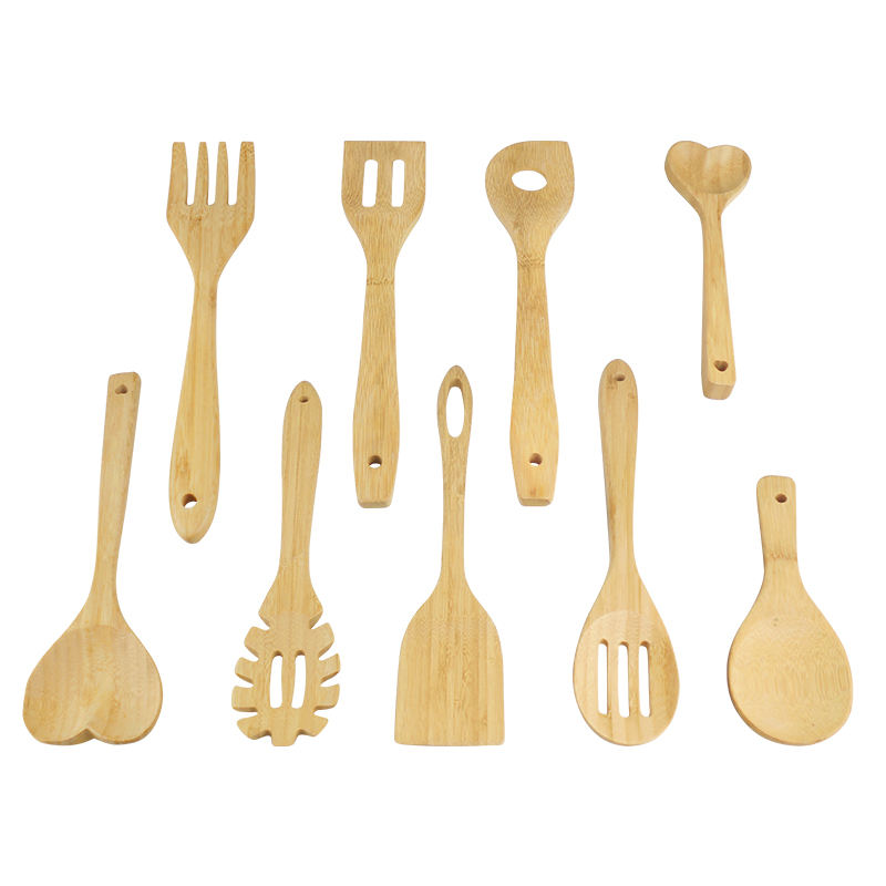 Wooden Kitchen Accessories Set Utensil 10 Piece Bamboo Cooking Utensils With Holder
